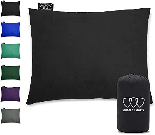 Gold Armour キャンプ用枕 低反発素材 コンパクト 圧縮可能 バックパック/ハンモック/旅行枕 子供と大人用 アウトドア&キャンプ用品 14インチ x 18インチ (ブラック)