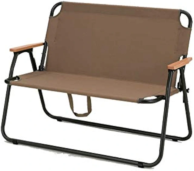 [ビジョンピークス] アウトドアベンチ リラックスアームレストベンチ VP160407I01 コヨーテ 幅112cm×奥行き65cm×高さ81cm 二人掛け 2人用 軽量 折りたたみ アルミ背付きベンチ - undefined