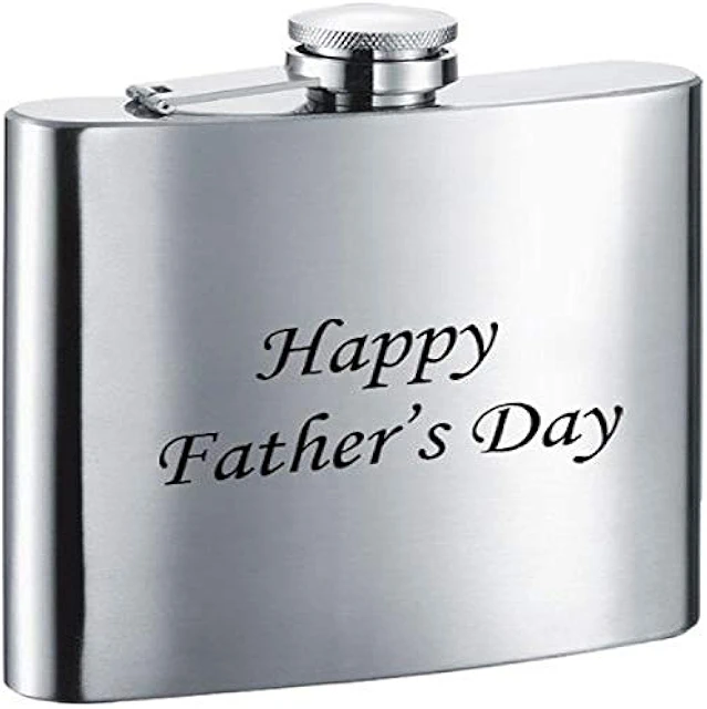 Visol " Happy父の日"ステンレススチールヒップフラスコと筆記体フォントエッジ、6オンス、サテン仕上げ、クローム - undefined