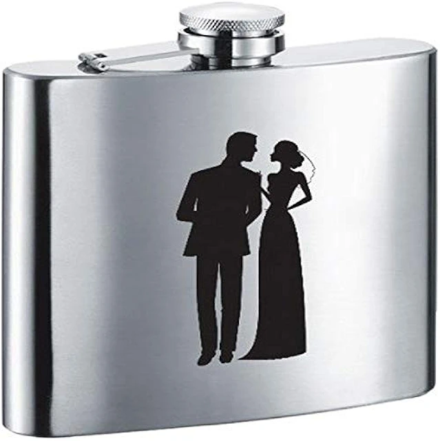Visol " Charming花婿と花嫁"ステンレススチールヒップフラスコ、6-ounce、サテン仕上げ、クロム - undefined