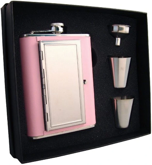 Visol " Claudia " Leatheretteフラスコ内蔵シガレットケースギフトセット、6-ounce付き、ピンク - undefined