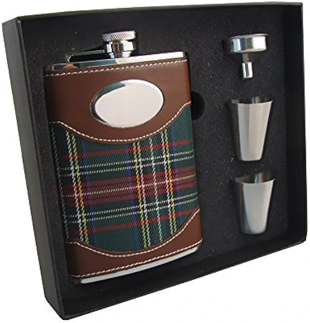 (240ml) - Visol"Edinburgh" Plaid Cloth Wrapped Stainless Steel Hip Flask Gift Set, 240ml